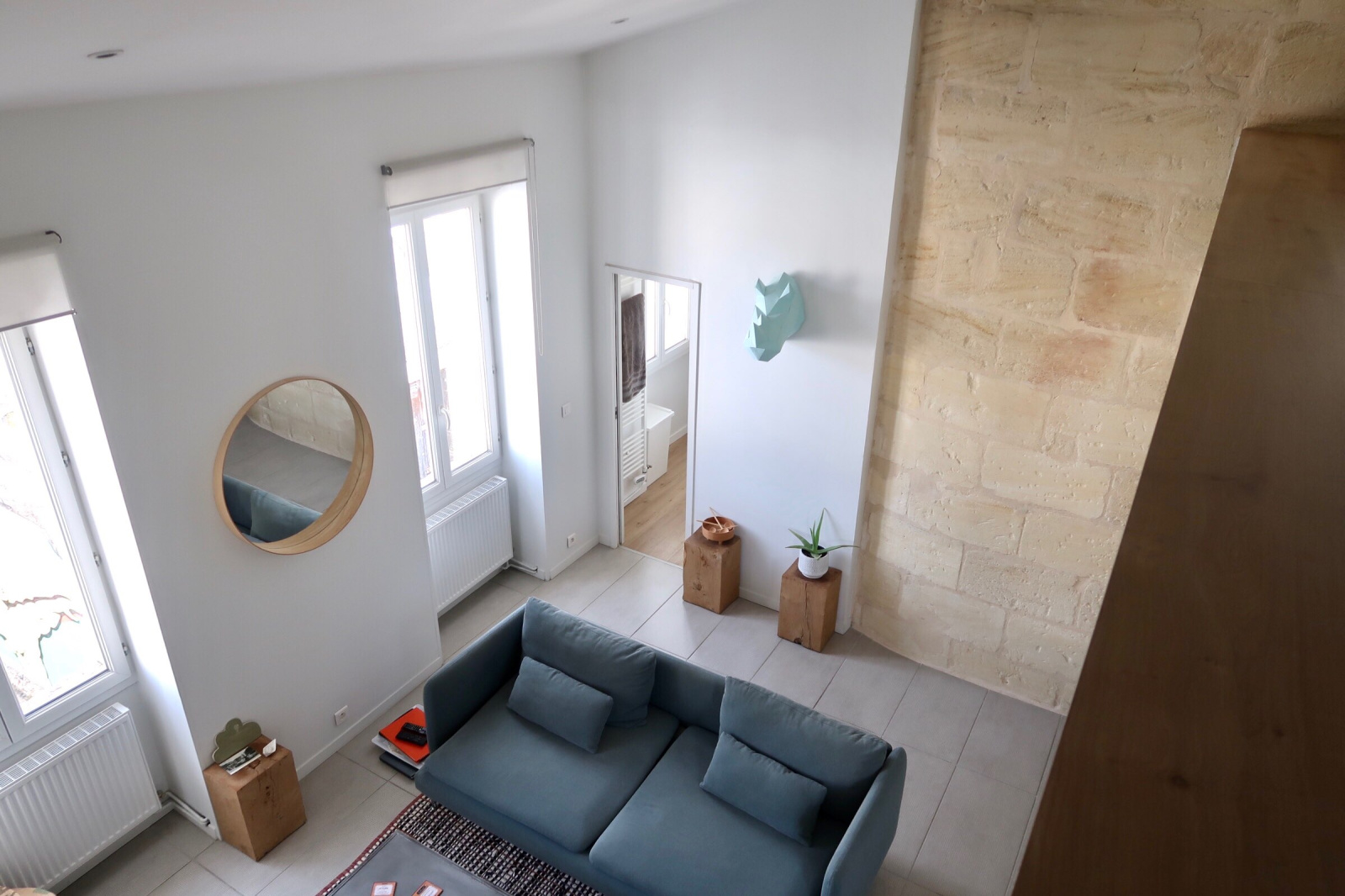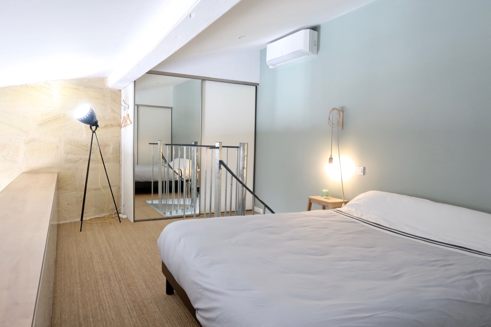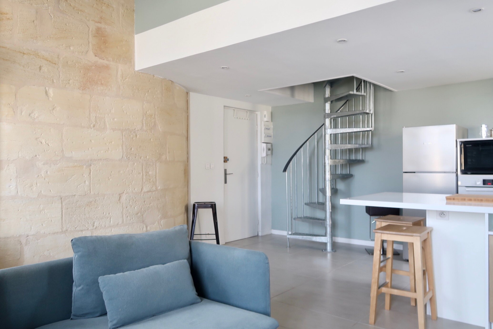 Superbe appartement T2, entièrement rénové, de 44,44 m2 Carrez, au 2 ème et dernier étage d'un petit immeuble en pierre de 4 lots, se composant comme suit : un séjour avec belle hauteur sous plafond et pierre apparente, avec sa cuisine américaine équipée avec îlot central, une salle d'eau avec WC, une mezzanine avec placards. L'appartement dispose du double vitrage et d'un système de climatisation. Une place de parking couvert au sein de l'immeuble fermé et sécurisé vient compléter cet ensemble.