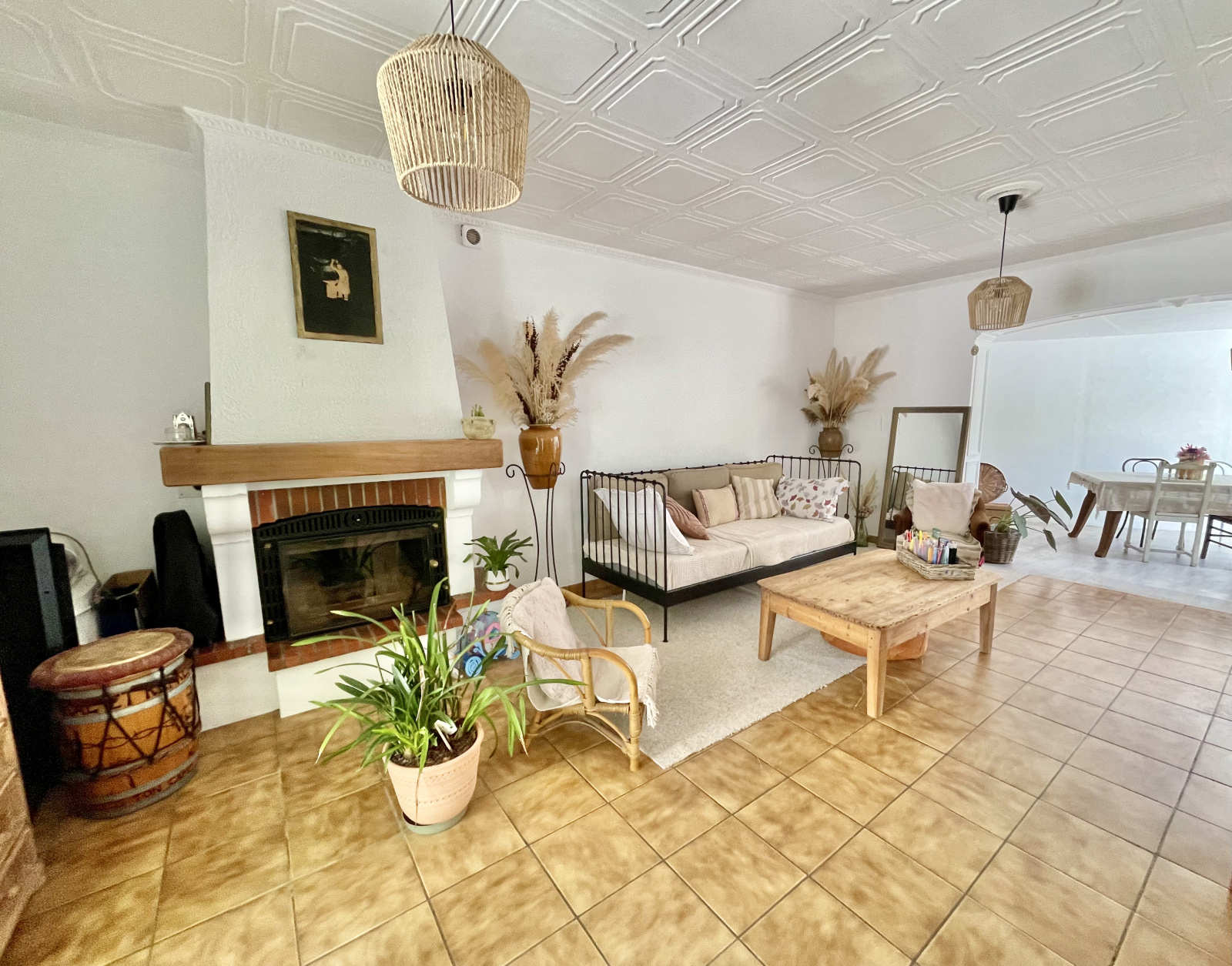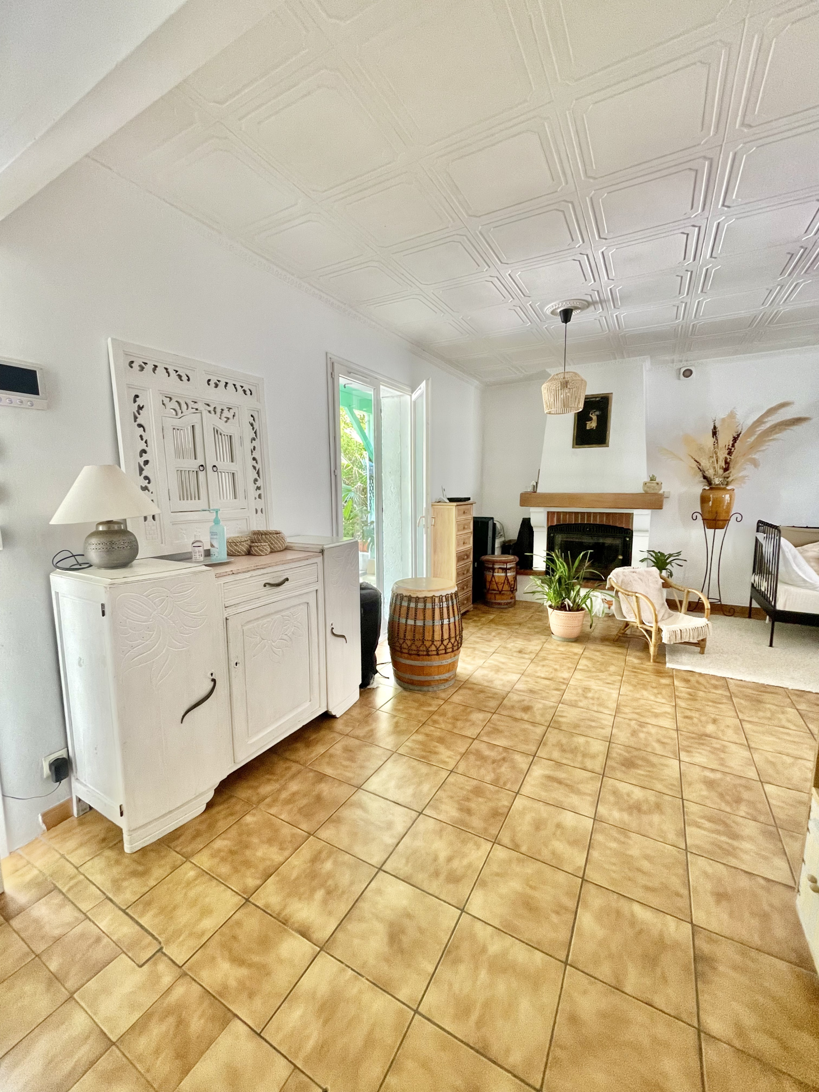 - Pièces de vie : La maison dispose d'un séjour de 29 m2 environ avec cheminée