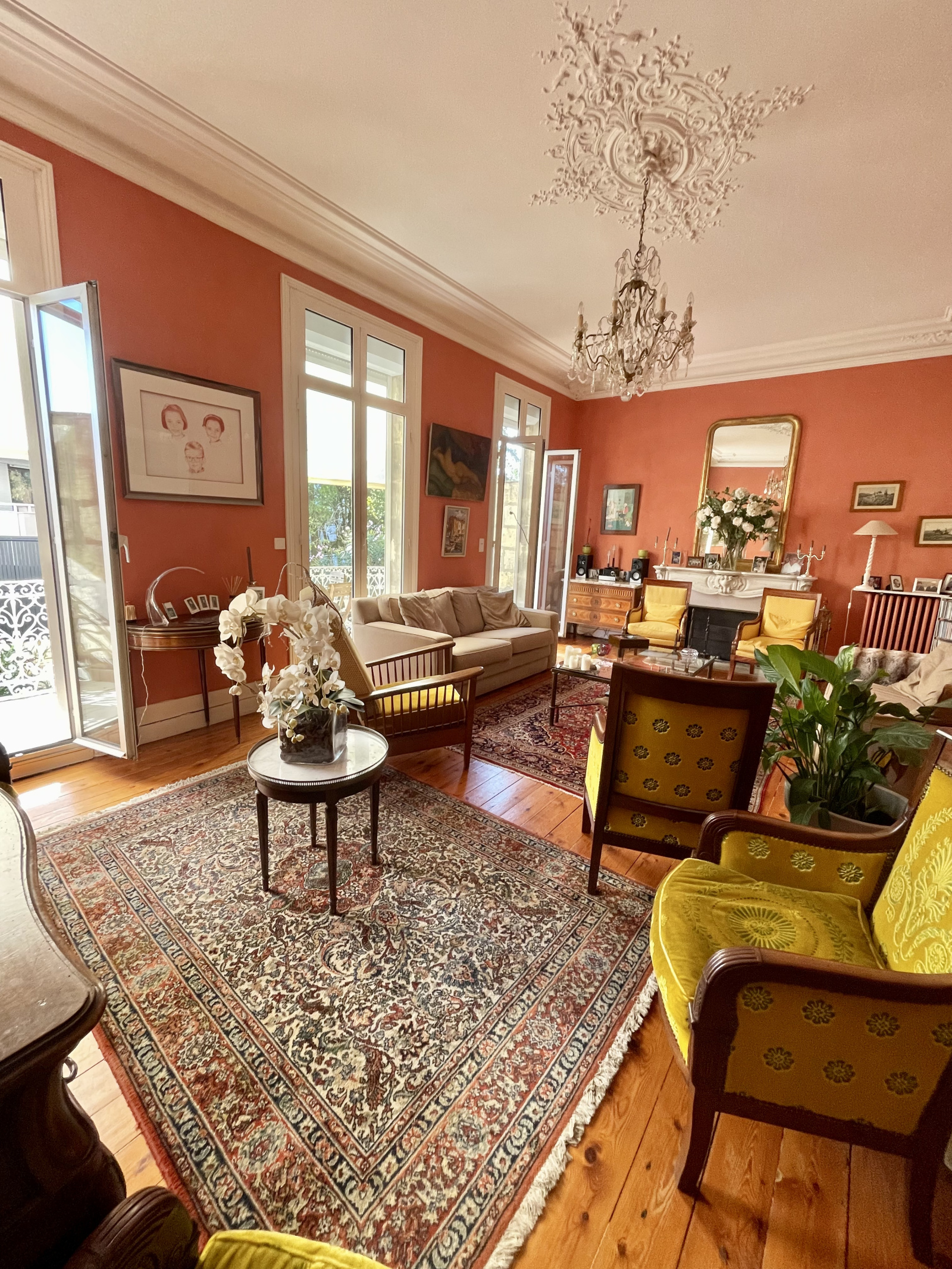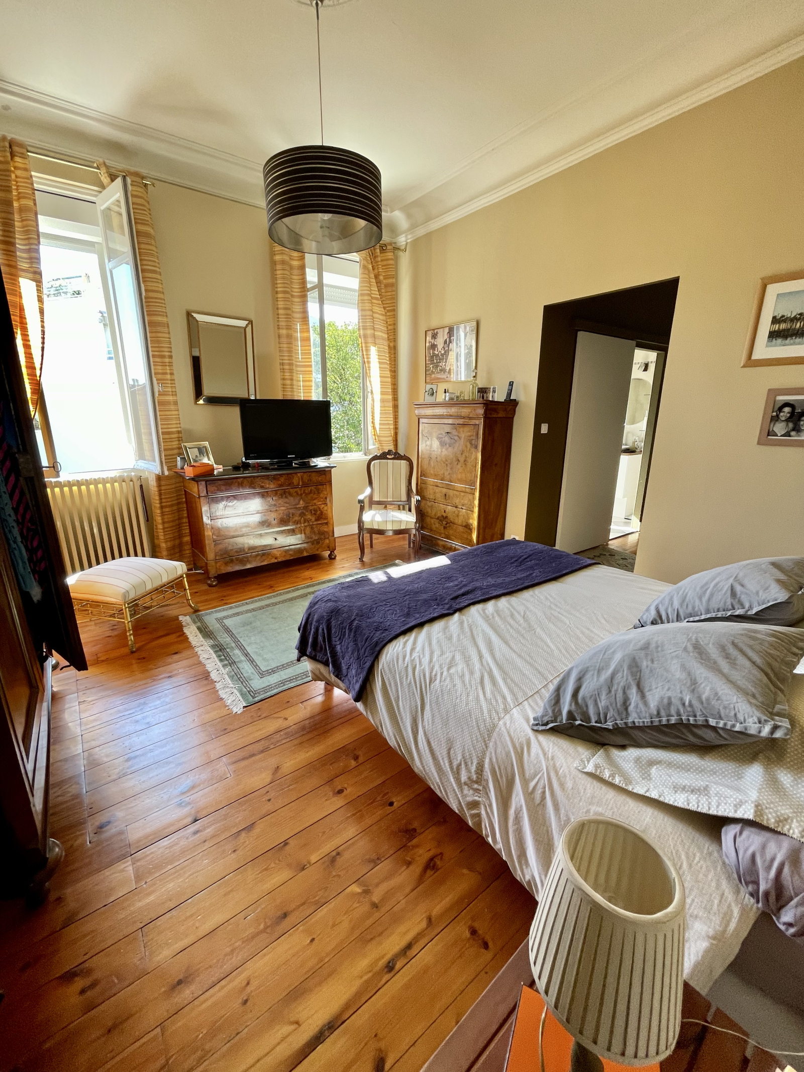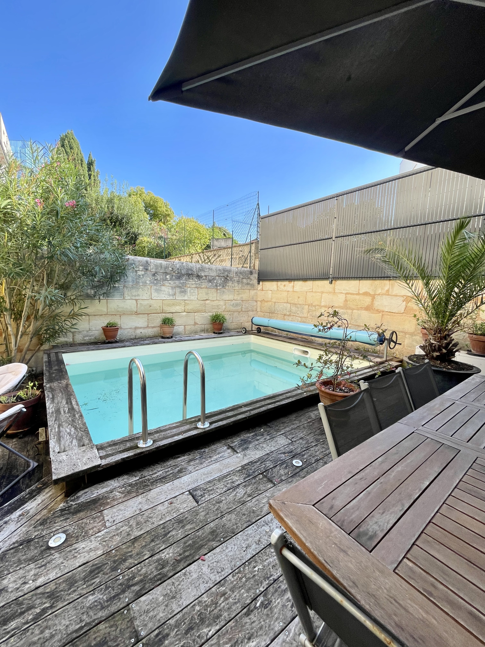 BORDEAUX CENTRE - Quartier ST SEURIN-FONDAUDEGE - Belle maison bourgeoise de 260 m2 répartie sur quatre niveaux comprenant une entrée, un séjour (exposition EST), une salle à manger, une cuisine équipée, cinq chambres et un bureau, salle de bains, salle d'eau, trois wc, une buanderie, une cave, le tout sur une jolie parcelle de 163 m2 avec terrasse et piscine.