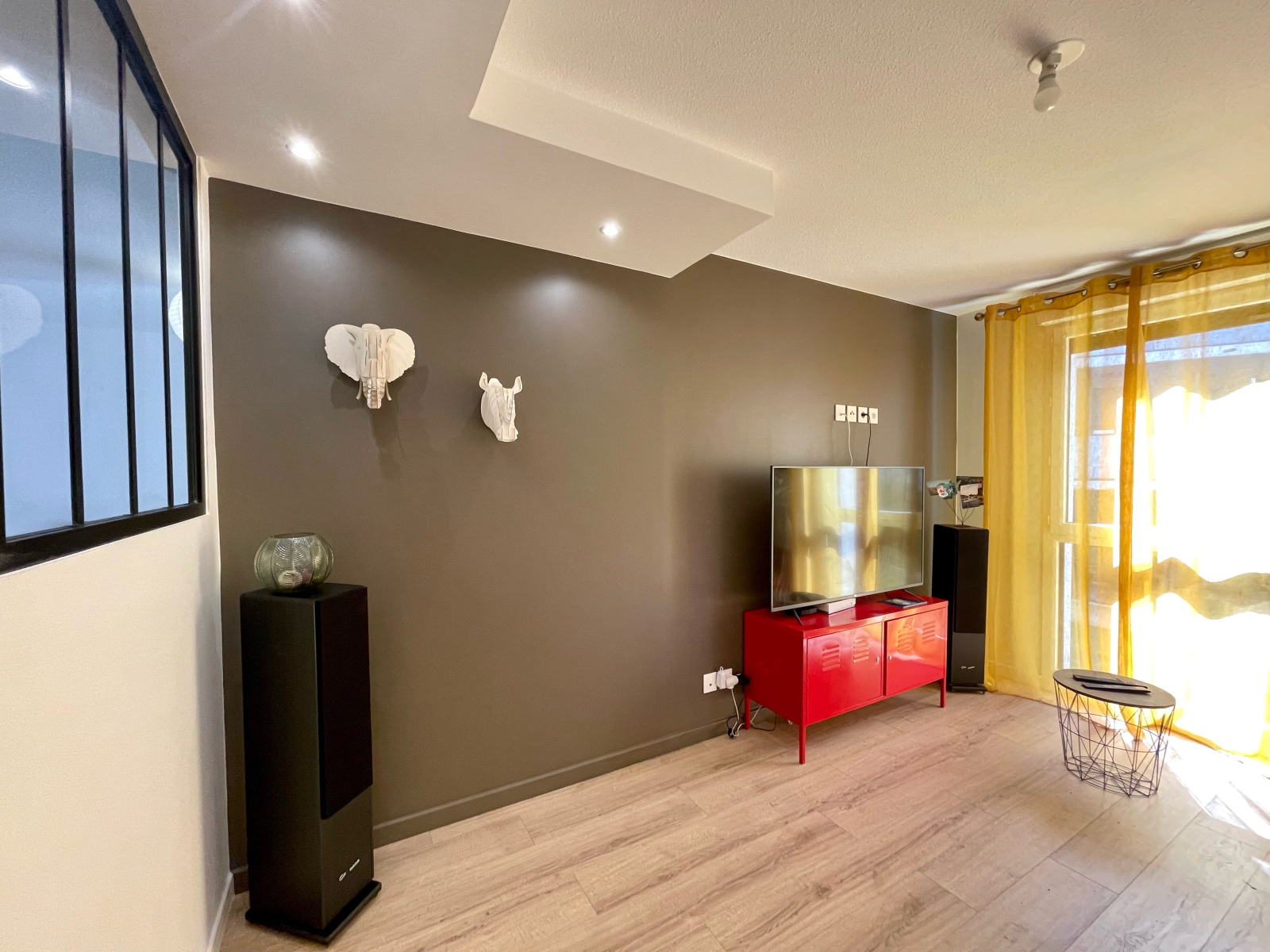 EXCLUSIVITE PIETARI IMMOBILIER- CENON- Bel appartement en RDC de 3 pièces de 56 m2 avec terrasse de 7,50 m2, dans une résidence sécurisée de 2017 encore sous garantie décennale, (de trois étages) se composant d’un séjour de 22 m2 (exposé Sud-Ouest) avec une cuisine américaine de qualité, entièrement équipée, deux chambres (12m2 et 13m2) dont une avec placards, un wc separé, une salle de bains de 7 m2. Une place de parking vient compléter cet ensemble. La copropriété comprend 140 lots . Charges courantes annuelles de copropriété de 900€. Taxe foncière de 1090 €. Les +++ : Pas de travaux à prévoir. Chauffage individuel au gaz. Proche de toutes comodités. (Bus à 300 m, à 4 KM de la place de Stalingrad, proche commerces/pharmacie/boulangerie).